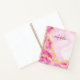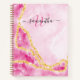 Create a unique girly notebook that features a glam pink design decorated with faux glittered waves. The initial and name template are in script calligraphic fonts.