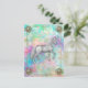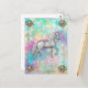 A very elegant unicorn postcard with a beautiful white unicorn with long flowing mane and tail, trotting across an abstract rainbow landscape. Around him is a thin, gold metal frame which has been embedded with monogrammed jewels at the corners. The jewels can be personalized to whatever monogram you wish. This pretty card would make a great birthday card for a unicorn-loving teen, all-occasion greeting card or even look great just popped in a frame and hung on a child's bedroom wall for a much-loved unicorn decoration (for instance).