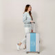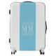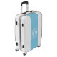 A personalized elegant monogram in white on turquoise luggage suitcase, featuring your name in a sans serif initial and name. A trending modern minimalist typography style. Click on "customize further to use our simple design tool to choose a different initial or name font.