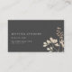 This gorgeous business card design features neutral boho florals, a moody dark grey background, and elegant typography. The reverse side features the same dark grey background with classic typography. Simply add your name and contact info. It has a chic, modern look and would make a fabulous first impression for your business. You can easily customize this card by changing the script font and contact info.