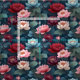 Elegant moody modern lotus flower pattern with dark and light blue, dark wine red and rose red, pink and white, and light and dark teal green jewel tones in a maximalist style design.