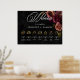 Embrace timeless elegance for your gothic-inspired celebration with our captivating wedding order of events poster sign with gold wedding icons. A soft black background provides the perfect canvas for a captivating, yet understated bouquet. Imagine a corner arrangement of muted rose blooms, where soft rust blush and rich burgundy hues mingle with dark green foliage. This ethereal design exudes quiet sophistication, perfect for the couple seeking a touch of romantic darkness. An elegant, vintage script announce your welcome, while your wedding details are showcased in a modern font, ensuring they stand out beautifully. This enchanting sign creates a truly unforgettable design for your special day, setting the tone for a moody and elegant celebration of love. Created by Simply Farmhouse Press.