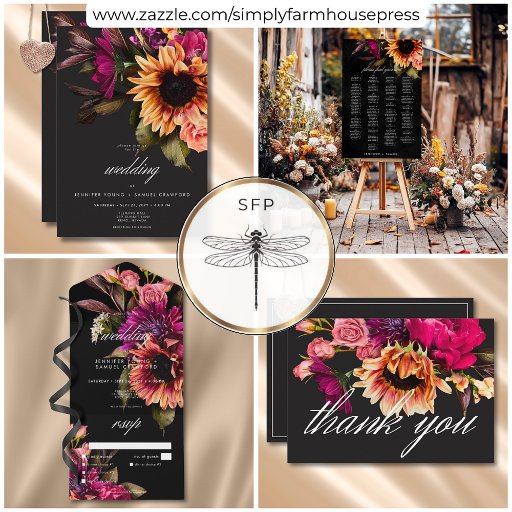 You can apply the design of your Elegant Moody Vibrant Sunset Floral Wedding Invitation to other items for a party such as stickers. The same goes for all of our digital products - any digital product/ design you purchase can also be used on any Zazzle product.