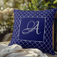 Elegant Moroccan damask navy Blue monogram Throw Pillow