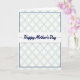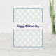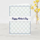 The front design shows a tall card split by a crisp white horizontal band across the center, creating a calm focal point. In the middle of that band, the words “Happy Mother’s Day” are written in dark blue, flowing lettering, with thin dark blue lines to the left and right that gently underline the message. Above and below, a repeating geometric pattern fills the space like a soft quilt, with interlocking ovals and diamond shapes that feel as tender and close as a warm hug ❤️. The colors stay light and airy—pale mint green, faint rose, and a soft goldenrod—resting on a bright white background like sunlit petals 🌼. The pattern has a slightly brushed, watercolor-like look that adds a quiet, affectionate softness without feeling fussy. A slim navy border outlines the patterned sections, tying them neatly back to the dark blue text in the center. The top and bottom panels mirror each other with the same pastel lattice, framed by that thin navy line against the white edges.