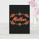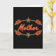 This design shows a single word, “Mother,” centered on a deep black background in flowing red lettering, edged with a thin gold outline that gives it a gentle glow ❤️. Around the word sits an oval frame like an old-style emblem, formed by curling brown tendrils with small gold scroll accents that feel like a caring embrace. The red letters lean smoothly from left to right, creating a soft, affectionate motion as if the word is being spoken tenderly. Four matching flowers mark the top, bottom, left, and right of the frame, adding a quiet, friendly touch 🌼. Each blossom is red with a fine gold edge, while the inner details and shading shift into warm brown tones that echo the border. The text is placed squarely in the middle, with the gold outline separating it crisply from the black so it stands out without looking harsh. The surrounding ornamentation stays evenly spaced, keeping the focus on the center while still feeling close and companionable. The four red flowers sit at the cardinal points of the oval frame, their gold-trimmed petals contrasting against the black background.