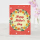 This design shows a softly glowing pale yellow oval at the center, like a warm spotlight that draws two hearts a little closer ❤️. Inside the oval, the main message sits centered in flowing red lettering, giving the words a tender, affectionate emphasis. A ring of stylized greenery wraps around the oval, with curved leaves and branches that feel like an embrace between close friends. Bright blossoms are tucked into the wreath—sunny yellows, warm oranges, and deep plum purples—adding a gentle, romantic garden mood 🌼. The background is a coral-to-deeper-red gradient that grows richer toward the bottom, creating a cozy, evening-like warmth behind the flowers. Small white circles of different sizes drift across the backdrop like floating petals, adding a light, celebratory sparkle without crowding the text. Some orange flowers show tiny dotted yellow centers, while yellow blooms have solid red centers that echo the red lettering. The purple flowers appear as small, solid shapes spaced between the brighter blooms, and the white circles are scattered across the coral field around the wreath.