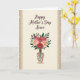This card features a centered bouquet of stylized flowers arranged in a vase on a creamy, softly lit background, with the blossoms leaning toward one another like close friends sharing a quiet moment ❤️. Blush pink, deep coral, and rich maroon petals mingle with leafy greens and tiny berry-like dots, creating a cozy, affectionate scene. The vase has small repeating red flower motifs and a rustic brown twine wrap at the neck, adding a homey, caring touch. Near the top, the message “Happy Mother’s Day Niece” sits above the bouquet in dark lettering that stands out gently against the light backdrop. The text is placed in a smooth, flowing style that feels tender and celebratory without overpowering the illustration 🌼. A lace-like border frames the edges with soft taupe swirls and dotted details, giving the design a delicate, cherished look. The overall composition keeps the bouquet as the main focus while the border and text guide your eyes naturally from top to center. Along the outer edge, the taupe frame repeats tiny curls and dot clusters like stitched trim around the picture.