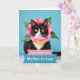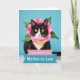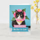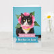 This card features a tuxedo-patterned cat centered against a smooth sky-blue background, dressed up with an oversized fuchsia flower-like collar that feels like a sweet, affectionate gesture ❤️. Crisp white markings brighten its muzzle, chest, and paws, while a thin yellow band peeks out beneath the petal ring for an extra splash of color. The cat’s golden eyes catch the light with a calm, curious gaze, like it’s holding a quiet moment of friendship with the viewer. Fine white whiskers fan outward, adding softness to the cat’s composed expression and making the outfit look even more tender and charming. Along the lower portion, two layered horizontal banners create a neat base for the message, one in pastel pink and the other in teal. The main text sits across these banners in a simple, easy-to-read style, standing out clearly against the soft colors 🌼. The fuchsia petals appear rounded and plush, with small green leaves tucked around the collar’s edge.