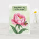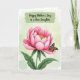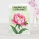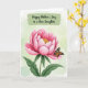 This design shows a large pink flower filling the lower two‑thirds of the tall layout, with layered petals that open gently like a caring embrace ❤️. At its center, golden stamens glow warmly, drawing the eye the way a loving glance does. Resting on an outer petal is a delicate winged insect, its wings patterned in orange and deep brown with light blue and white spots, like a quiet companion lingering close. The background is a light green wash with a subtle watercolor-like texture, giving the scene an airy, garden-fresh setting 🌼. Near the top, the words “Happy Mother’s Day to a dear Daughter” appear in a casual handwritten style, centered within a wide, painterly green brushstroke. The green stroke frames the message like a soft banner, balancing the flower below and guiding your gaze downward. Fine shading along the petals adds depth and tenderness, while the insect’s crisp markings stand out against the pale green backdrop. The brushstroke sits horizontally across the upper portion, with the text in a darker tone for easy reading.
