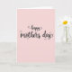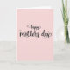 This card features a centered “Happy Mothers Day” message set against a soft pastel pink background that feels gentle and affectionate ❤️. The words are arranged on two lines, with “happy” placed above “mothers day,” creating an easy, flowing read. The lettering is black, with smooth curves and varying line thickness that gives the phrase a tender, romantic softness without needing any extra imagery. Subtle decorative curls appear on a few letters, like the tall strokes in “happy” and rounded shapes in “mothers day,” adding a light, airy flourish 🌼. The spacing is balanced, leaving plenty of open pink space around the text so the message stands out calmly. The overall look is evenly lit, with no harsh shadows, so the background stays creamy and soothing while the black letters remain crisp. Small spiral accents punctuate select letters, especially around the “h” and “p” in “happy” and the “o,” “s,” and “y” in “mothers day.”