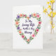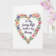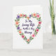 This greeting card features a heart-shaped wreath of flowers and leafy stems that seems to lean in like a gentle hug around the message ❤️. Soft blossoms in blush pink, warm coral, and calm lavender mingle with layered greens, with thin stems curling together like two friends walking arm in arm. The background stays bright white, giving the floral heart plenty of breathing room and making the center feel calm and open. In the middle of the heart, the main words sit centered in deep violet lettering, with smooth, flowing strokes that look tender rather than formal. Smaller leaves and buds fill the curves of the heart so the frame feels full but not crowded, like a bouquet arranged with care. A few petals tilt inward toward the text, adding a quiet, affectionate focus, and a tiny 🌼 detail adds a sunny touch among the cooler purples. The violet text is placed squarely inside the floral heart, surrounded by blush, coral, lavender, and green accents on a white field.
