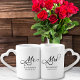 Celebrate your love with this charming set of lovers' mugs, featuring "Mr." and "Mrs." in elegant script. Perfect for newlyweds or as a wedding or anniversary gift, these mugs are customizable with your last name and wedding date for a personal touch. Whether for daily use or as a keepsake, these matching mugs beautifully commemorate your special day and bring a little romance to every sip.