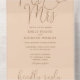 This all-in-one minimalist wedding invitation features elegant typography on a soft peach background. The invitation includes a perforated RSVP card that can be individually addressed or left blank so you can handwrite your guest's address details. Designed by Thisisnotme©