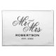 Elegant Mr and Mrs wedding reception Cloth Placemat. Classy black and white typography template with personalized surname and date of marriage. Chic table decorations for fancy dinner party.