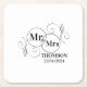 elegant mr & mrs monogram black and white wedding square paper coaster