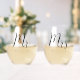 This is a simple yet elegant design featuring a handwritten script font for the 'Mr' and 'Mrs' and full caps serif font for the name and wedding date. The template is very easy to modify. Use the Zazzle tools to edit the wording or go into the design screen to change the color or size of the current design. Elegant Mr & Mrs Stemless Wine Glasses.