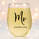 Elegant Mr Mrs Wedding Stemless Wine Glass