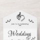 Elegant design for a music theme wedding. Include the RSVP with your invitation as a postcard for simple quick answers. Don't forget to add a stamp to the return RSVP. Simple design that has a high class look.