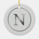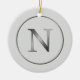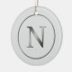 Elegant 'N' Monogram Noel Silver Line Border Ceramic Ornament