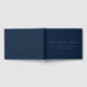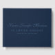 Memorial service guest book in navy blue with blue text. Add your loved one's name in a gorgeous script.