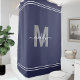 Create Your Own Custom Elegant Navy Blue and White Monogram Shower Curtain. This chic and stylish shower curtain adds a luxurious touch to any bathroom with a custom monogram design on a sleek navy blue background, featuring a bold gray initial letter and a flowing white script name for a personalized, sophisticated look. The curtain is accented with double white stripes at the top and bottom, adding a refined detail to the design. All colors are fully customizable to suit your style and bathroom decor. Perfect for those who love nautical or beach house themes, this monogrammed shower curtain makes a thoughtful gift for weddings, housewarming parties, birthdays, or any special occasion. Combining style with practicality, this unique shower curtain adds a timeless, personalized flair to any bathroom.