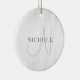 Elegant Name Monogram & Thin Gray Ombre Stripes Ceramic Ornament