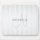 Elegant Name Monogram & Thin Grey Ombre Stripes Mouse Pad