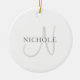 Elegant Name Monogram | White & Gray Ceramic Ornament