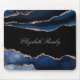 Elegant Name Navy Blue Rose Gold Agate Black Mouse Pad