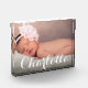 Crafted with an eye for elegance and simplicity, this photo block features a clean, white overlay where your baby's name is artfully scripted. The chic typeface adds a touch of sophistication, ensuring that the focus remains on the precious image beneath.