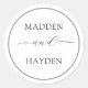 Elegant Names Hearts Script Calligraphy Wedding Classic Round Sticker