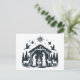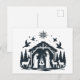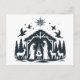 Share the true spirit of Christmas with this beautifully crafted nativity silhouette postcard. Featuring Mary, Joseph, and the manger scene beneath the guiding star, the design is surrounded by evergreens, gentle animals, and soft lantern light for a peaceful, reverent feel. Its clean monochrome style adds a modern touch to a classic moment, making it perfect for holiday greetings, spiritual messages, or meaningful seasonal correspondence.