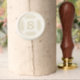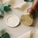 Before the wax hardens, gently and evenly press the wax seal stamp into the melted wax, ensuring it's centered.