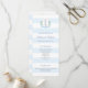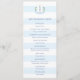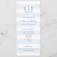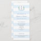 This timeless wedding program design features a classic watercolor coastal-inspired monogram crest and elegant wide blue and white stripes.