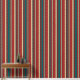 A classic pattern of vertical stripes in warm, autumnal hues of red, teal, and cream, accented by thin black lines. This timeless design evokes feelings of comfort, warmth, and nostalgia. Perfect for adding a touch of seasonal style to your home.