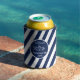 Elegant Nautical Striped Wedding -Navy Blue, White Can Cooler
