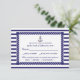 Customize this elegant and stylish, modern Nautical Wedding RSVP Card. Navy Blue and white striped pattern design with a navy ship anchor at the top. A template for an easy customization of response date.