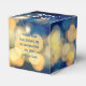 2" x 2" x 2" favor boxes feature an all-over elegant design of navy blue, royal blue and gold blurred lights bokeh with your name on the top, Quinceañera on the front and a personal thank you message on the back. Change the fonts, font colors and the wording. MATCHING invitations and more in our store --> http://bit.ly/2JGREwA <--