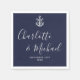 Featuring a ship's anchor and signature style names, these elegant navy blue napkins can be personalized with your nautical wedding details in chic white lettering. Designed by Thisisnotme©