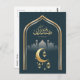 "Elegant Navy Blue and Gold Eid Mubarak Postcard"