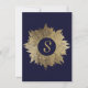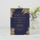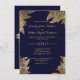 Elegant Navy Blue and Gold Faux Drawn Leaf Pattern Invitation