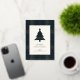 Elegant Navy Blue and Green Plaid Christmas Foil Holiday Card