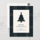 Elegant Navy Blue and Green Plaid Christmas Holiday Postcard
