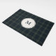 Elegant Navy Blue and Green Plaid Monogram Doormat