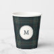 Elegant Navy Blue and Green Plaid Monogram Paper Cups