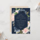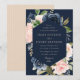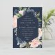 elegant navy blue and pink blush blooms wedding invitation