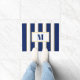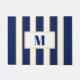 A simple design of navy blue, white and gold stripes with a gold rimmed monogram.