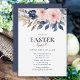 Elegant Navy Blue Blush Pink Floral Easter Lunch Invitation