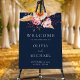 Elegant Navy Blue Boho Chic Floral Wedding Welcome Foam Board